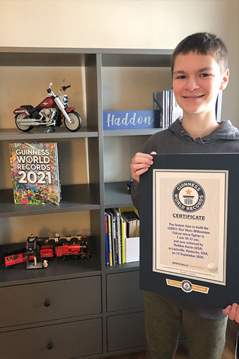 ABD’nin Kentucky kentindeki Louisville’de yaşayan 12 yaşındaki Haddon Haste, binlerce modüle ayrılmış LEGO Star Wars Millennium Falcon mikro dövüşçüsünü kısa müddette birleştirerek rekor elde etti.