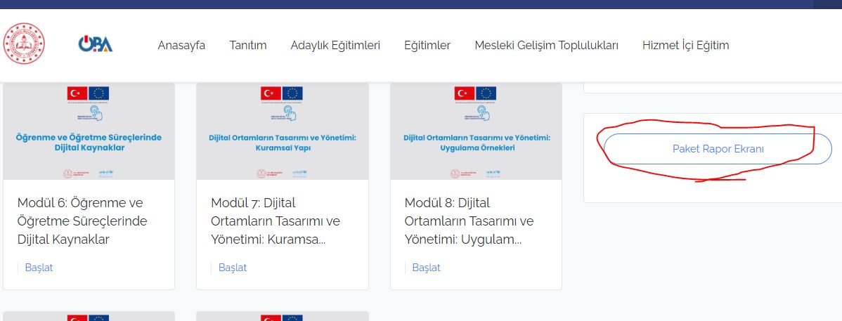 Giriş yaptıktan sonra ana sayfada yer alan veya profil menüsündeki “Eğitimlerim” bölümüne tıklayın.